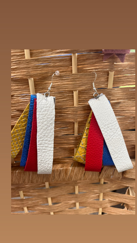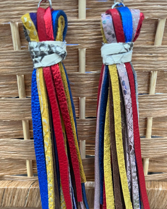Multi-colored leather fringed strips. These earrings match everything and will compliment any outfit!Regular price $45.00Regular price $45.00 -