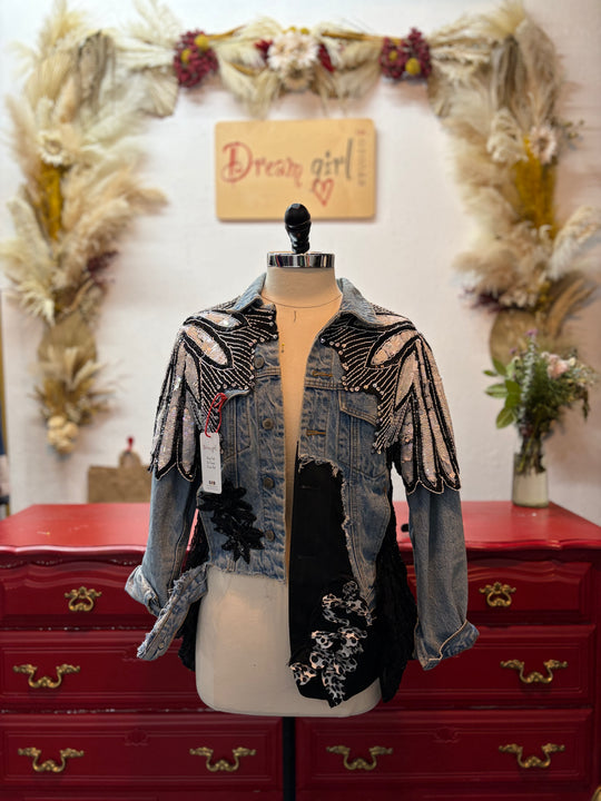 Vintage Remixed Pieces start off as ordinary thrifted items but soon become one of a kind extra-ordinary designs. Designs that set you a part from the crowd and stop traffic at the simple sight of them. Vintage Remixed pieces are all One of One pieces, no one will have your exact design and that’s what makes it so special! So Stand Out, Be Unique and Dream Big!