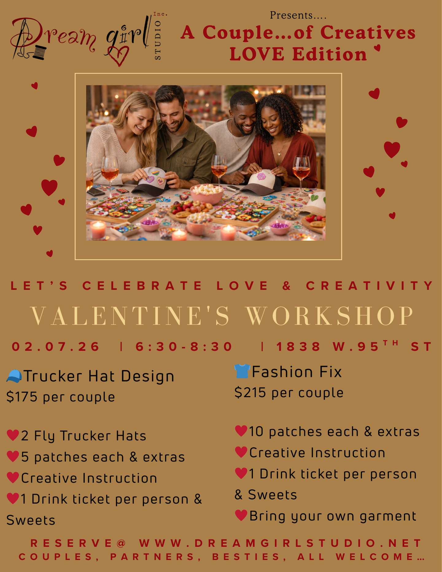Let’s celebrate Love & Creativity with a Valentine's Workshop. Bring your boo, your partner, your bestie, or whomever you choose.