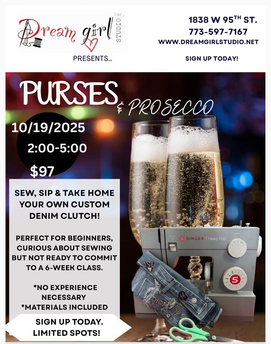 Sunday, October 19th from 2:00-5:00. Come Sip, Sew and take home your own Custom Denim Clutch Purse! Perfect for those curious about sewing but not ready to commit to a 6 week class. You’ll learn… How to...Regular price $97.00Regular price $97.00 -